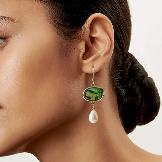 Orecchini vintage con opale blu e cristalli d'oro rosso
