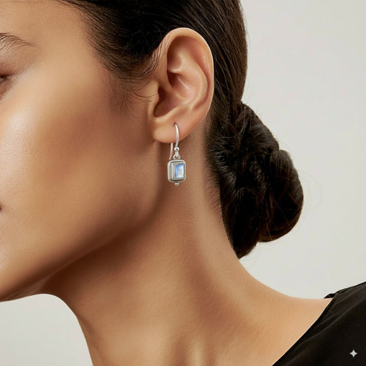 Beatriz - Orecchini vintage con pietra lunare quadrata