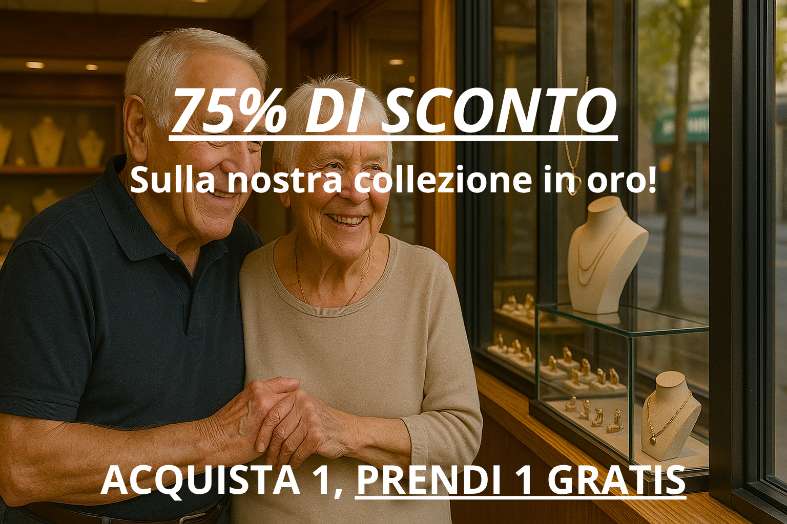 Da 35 anni, ogni pezzo della nostra collezione è realizzato con passione e tradizione. Non si tratta solo di gioielli, ma di parte della nostra eredità, creata per portare con voi le loro storie e i loro ricordi. Per ringraziarvi di averci accompagnato in tutti questi anni, offriamo fino al 75% di sconto sulla nostra collezione in oro. Il vostro sostegno significa molto per noi.