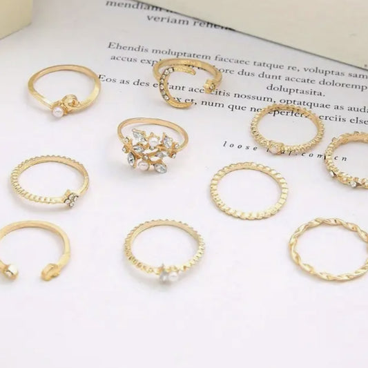 Set di 10 anelli regolabili color oro con diamanti sintetici per donna